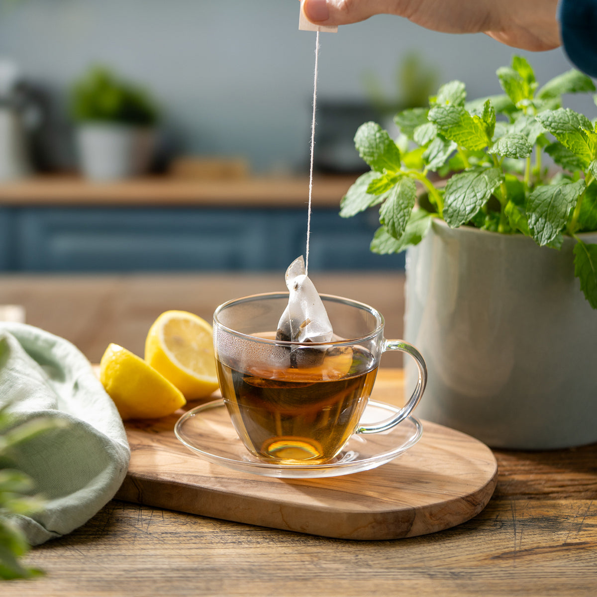 Biodegradable pyramid bags limit waste, and fine mesh improves brewing quality.